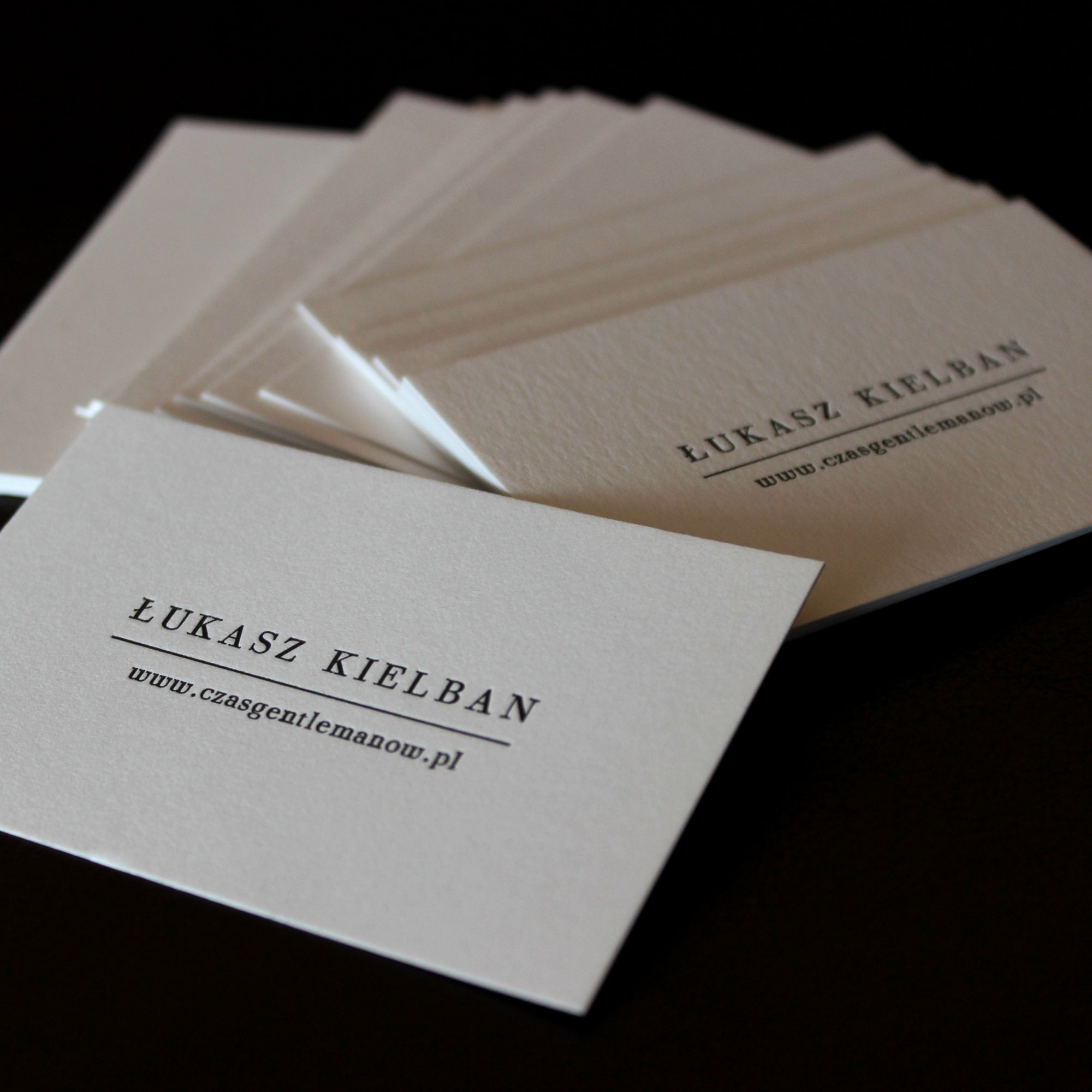Pierwsze pewnie przychodzą wizytówki. Zależy nam, by prezentowały się znakomicie i pozytywnie wyróżniały spośród innych. Unikamy pstrokacizny i kiczu, a szukamy czystej i czytelnej klasyki. Kiedyś w tych poszukiwaniach odkryłem wzory międzywojennych gentlemanów i takie właśnie bilety wizytowe musiałem sobie sprawić. Obecnie jednak jestem o krok wyżej – metoda wyrabiania moich wizytówek również pochodzi z tamtego okresu. Mogliście je już zobaczyć na profilu Czasu Gentlemanów na Facebooku: